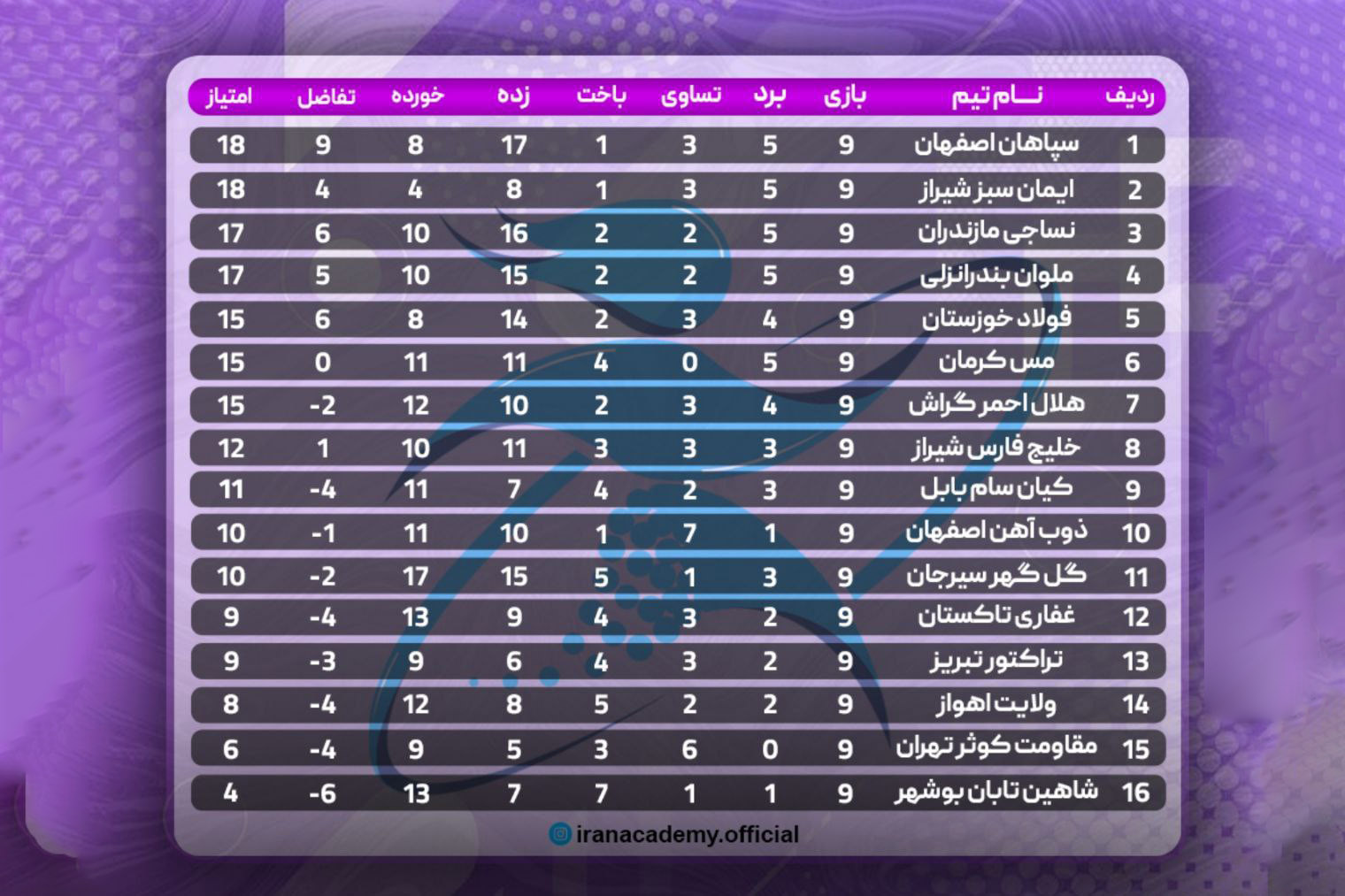 هلالاحمر با این تساوی در رده هفتم جدول قرار دارد ولی رقابت نزدیک تیمهای در این فصل باعث شده که فاصله هلالاحمر با صدر جدول تنها ۳ امتیاز باشد.