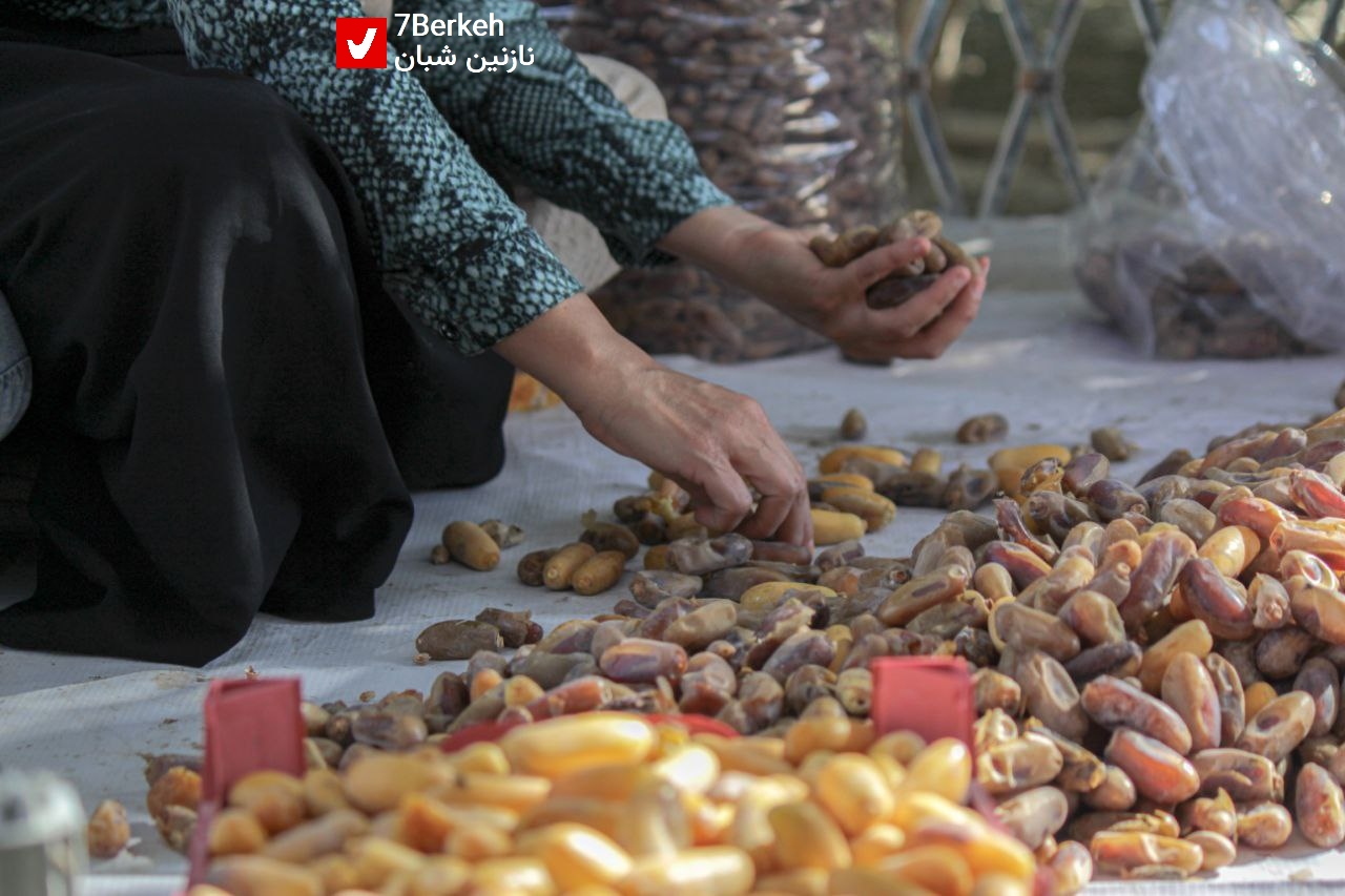 بر اساس آمار جهاد کشاورزی شهرستان گراش بیش از ۹۰۰ هکتار نخلستان بارور دارد. حضور زن‌ها و مردها و شادی و بازی بچه‌ها، شور و تلاش این کار سخت را زیباتر می‌کند و این یک تصویر سرزنده، پرنور و گرم، از زندگی جنوبی و مردم جنوب و شهر گراش است. عکس‌های نازنین شبان، عکاس هفت‌برکه، از این محصول جنوبی و گوشه‌هایی از جدا و پاک کردن آن را با هم می‌بینیم.