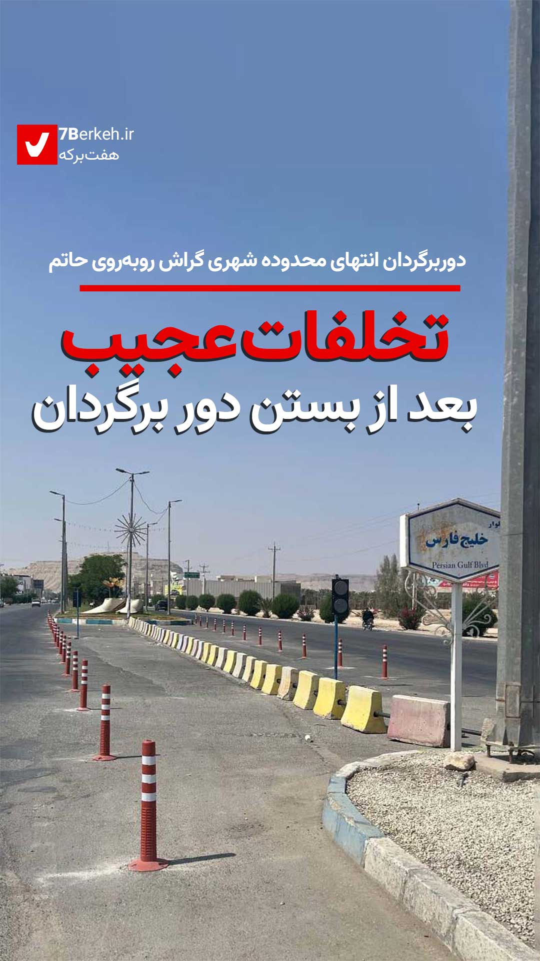 هفتبرکه: بسته شدن یکباره دوربرگردان انتهای محدوده شهری گراش در بلوار خلیج فارس، باعث اعتراض مغازهداران و ساکنان بلوار خلیج فارس شده است. شهرداری میگوید پنجشنبه ۲۴ مهرماه ایجاد دوربرگردان جدید آغاز میشود.