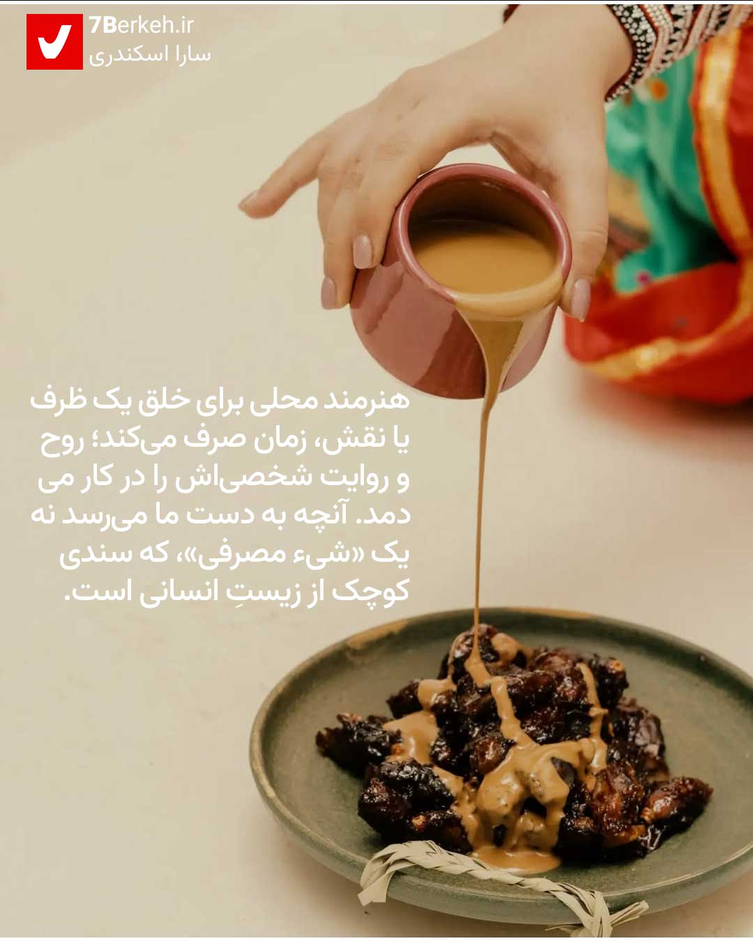 روزگار ما بیش از هر زمان دیگری به این یادآوری نیاز دارد: زندگی فقط در خرید و مصرف خلاصه نمیشود. پشت هر کاسهی سفالی، پشت هر نقش ساده روی یک دستبافته، صدایی هست که به ما میگوید ریشه داریم، داستان داریم، حافظه داریم. و اگر این صدا خاموش شود، شهرهایمان پر میشوند از کالاهای بینام و بیهویت، اما تهی از معنا.