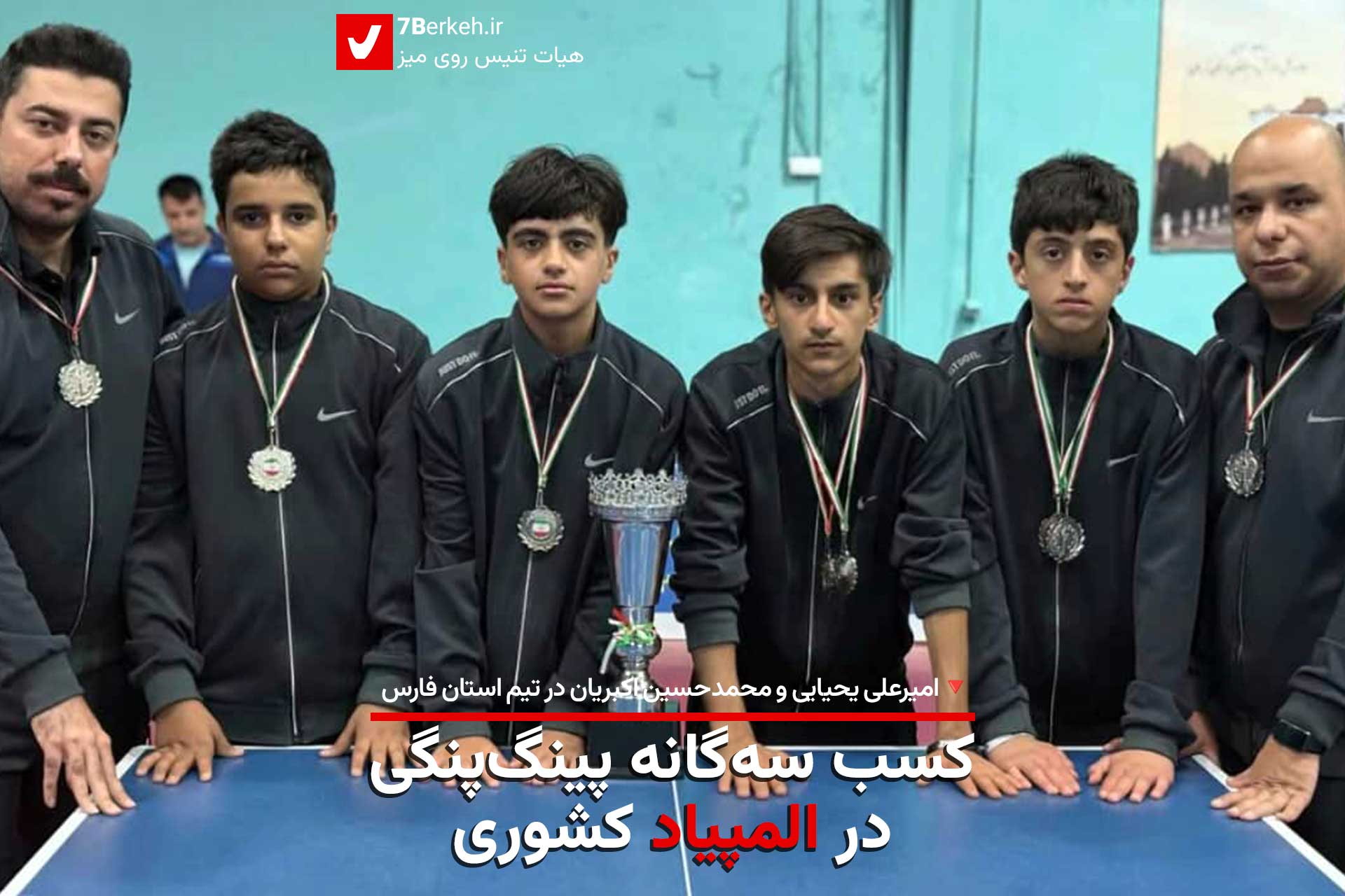 هفت‌برکه: امیرعلی یحیایی و محمدحسین اکبریان، اعضای تیم چهار نفره‌ی استان فارس در مسابقات المپیاد نوجوانان تنیس روی میز کشور، به چند مقام انفرادی، دونفره و تیمی رسیدند. تیم استان فارس با حضور این دو بازیکن نایب‌قهرمان کشور شد. علاوه بر این، امیرعلی یحیایی در بخش دونفره به مقام دوم و در بخش انفرادی به مقام سوم رسید. بدین ترتیب، یحیایی توانست در هر سه بخش انفرادی، دونفره و تیمی مقام کسب کند.