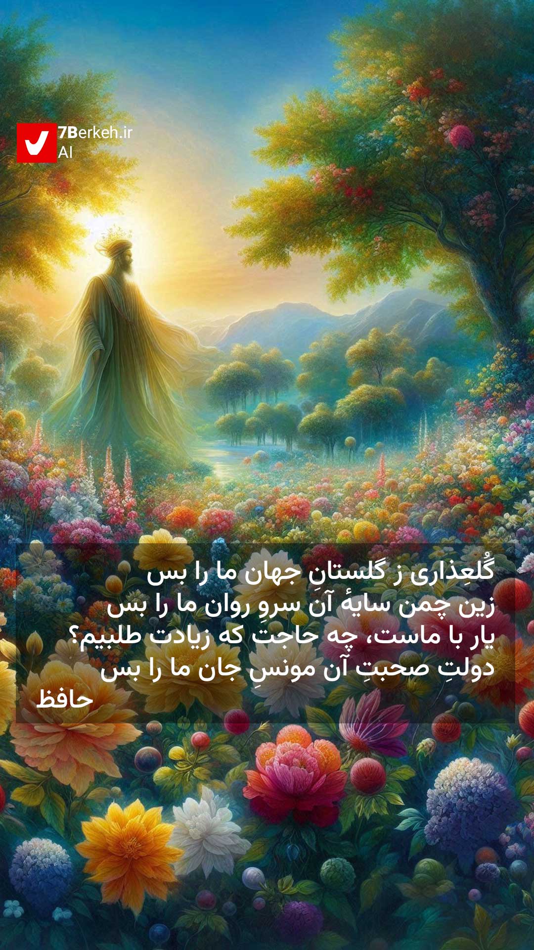 غزلیات او سرشار از نغمه‌های عشق و رهایی است، جایی که دل و زبان از بند زمان می‌گریزد و در بزم معنا مست می‌شود. صدایی که بوی ناب عشق می‌دهد و طعم خالص عرفان. دیوان حافظ باغی است که هر بار با خواندنش، گل تازه‌ای در جان می‌شکفد؛ «در ره عشق نشد کس به یقین محرم راز / هر کسی بر حسب فهم گمانی دارد.» در هر غزل حافظ، رازی از زندگی نهفته است. واژه‌هایی که نه صریح‌اند و نه پنهان، اما در لحظه‌ی نیاز، معنا را به دل می‌رساند.