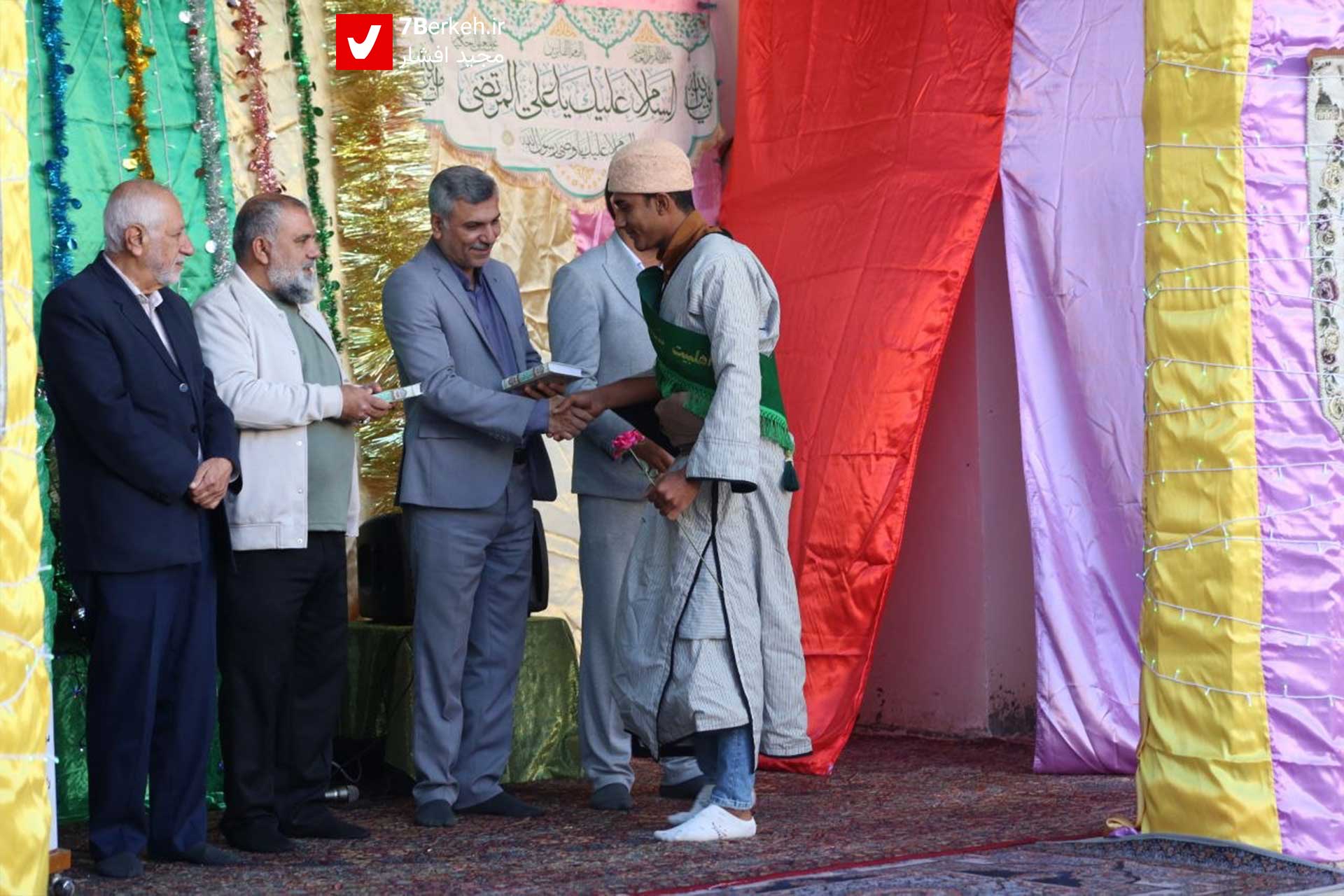این مراسم به مناسب میلاد امام علی(ع) و روز پدر، عصر جمعه ۱۲ دیماه ۱۴۰۴ با حضور دکتر فرجی، مدیر آموزش و پرورش؛ محمد شکاری، رییس جمعیت هلال احمر؛ نمایندگان شهرداری و بخشداری، و جمعی از فرهنگدوستان در خانه امام قهرمانخانی برگزار شد. بخشهای دیگر برنامه شامل قرائت قرآن توسط محسن مهیایی، اجرای دکلمه توسط غزل منفرد و مولودیخوانی حاج ناصر مهیایی بود. اجرای مراسم به عهده احمدرضا خودکامه بود.