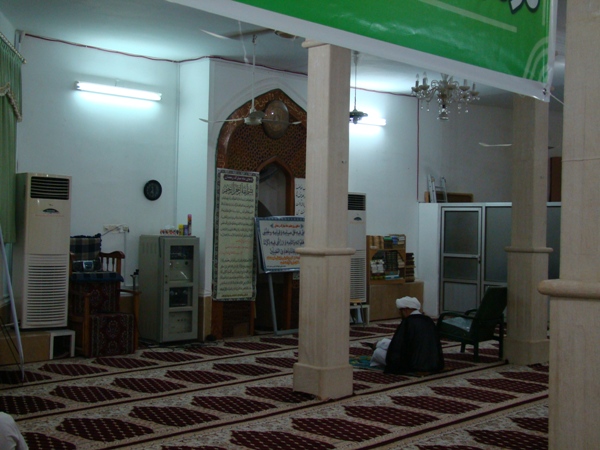 وضو میگیرم و وارد سالن مسجد میشوم. سالن به شکل ذوزنقه است. و چند ستون در آن دیده میشود. فرش محرابی زرشکی سرتاسر سالن را پوشانده است. فقط چند نفر وارد سالن شدهاند و تا اذان، ربع ساعتی مانده است. سیستمهای خنک کننده مسجد بی سر و صدا کار خودشان را می کنند و هوای سالن خنک و عالی است. چند پسر بچه ده دوازده ساله نشستهاند و آرام در گوشی صحبت میکنند و چند پیرمرد که آنها هم آهسته قرآن میخوانند. امام جماعت مسجد پشت یکی از ستونها روی صندلی نشسته و قران میخواند. صدای چند زن از پشت پرده میآید. جایگاه خانمها درست پشت سر جایگاه آقایان قرار گرفته که با پرده سبزرنگی جدا شده است. قفسه کتابخانه دست راست سالن خودنمایی میکند. سری به قفسه میزنم. دوره کامل تفسیر المیزان، ترجمه تفسیر طبری، توضیح المسایل مراجع مختلف، چندین جلد قران و مفاتیح الجنان و کتابهای مذهبی زیادی به چشم میخورد. خوب که لابلای کتابها نگاه میکنم، کتاب «روش تحقیق» و «دیالکتیک مارکسیستی» هم دیده میشود. و اگر دقت بیشتری میکردم کتابهای جالب دیگری هم پیدا میشد.