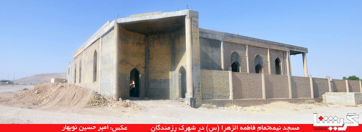 مسجد فاطمهالزهرا (س)، بنایی نیمهتمام است که حدود ۲۰ سال پیش در این منطقه به همت مرحومه اکبری، از گراشیهای مقیم کویت، کلید خورده است. حاج حسین غفوری، از معتمدین و اعضای هیات امنای این مسجد، در اینباره میگوید: «این مرحومه در اواخر عمر خویش وصیت نمود که کار خیری در گراش برایش انجام شود و به همین منظور با تعیین بودجه آن، اقدام به ساخت مسجد در شهرک رزمندگان نمودند.» در ابتدای امر، طرح این مسجد با مخالفتهایی روبرو میشود. با این حال ساخت آن با مبلغ ۸۵ میلیون تومان از سوی بانی خیر کلید میخورد. تا اینکه پس از گذشت زمان و فوت مرحومه اکبری، بانی خیر مسجد فاطمهالزهرا (س)، و همچنین با توجه به حجم زیربنا، احداث مسجد متوقف، و بنای آن تا سالها به حالت نیمهکاره رها میشود.