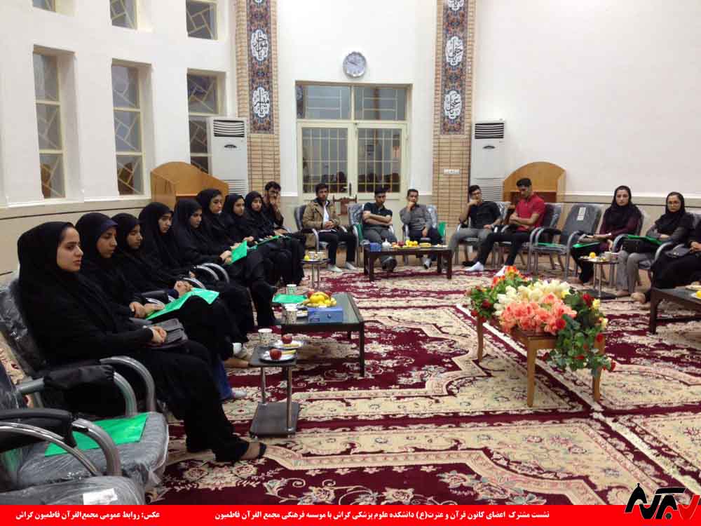 هفت برکه (گریشنا): اعضای کانون قرآن و عترت(ع) دانشکده علوم پزشکی گراش با حضور در موسسه فرهنگی مجمع القرآن فاطمیون این شهرستان، نشست مشترکی با مسئولین این موسسه برگزار کردند.